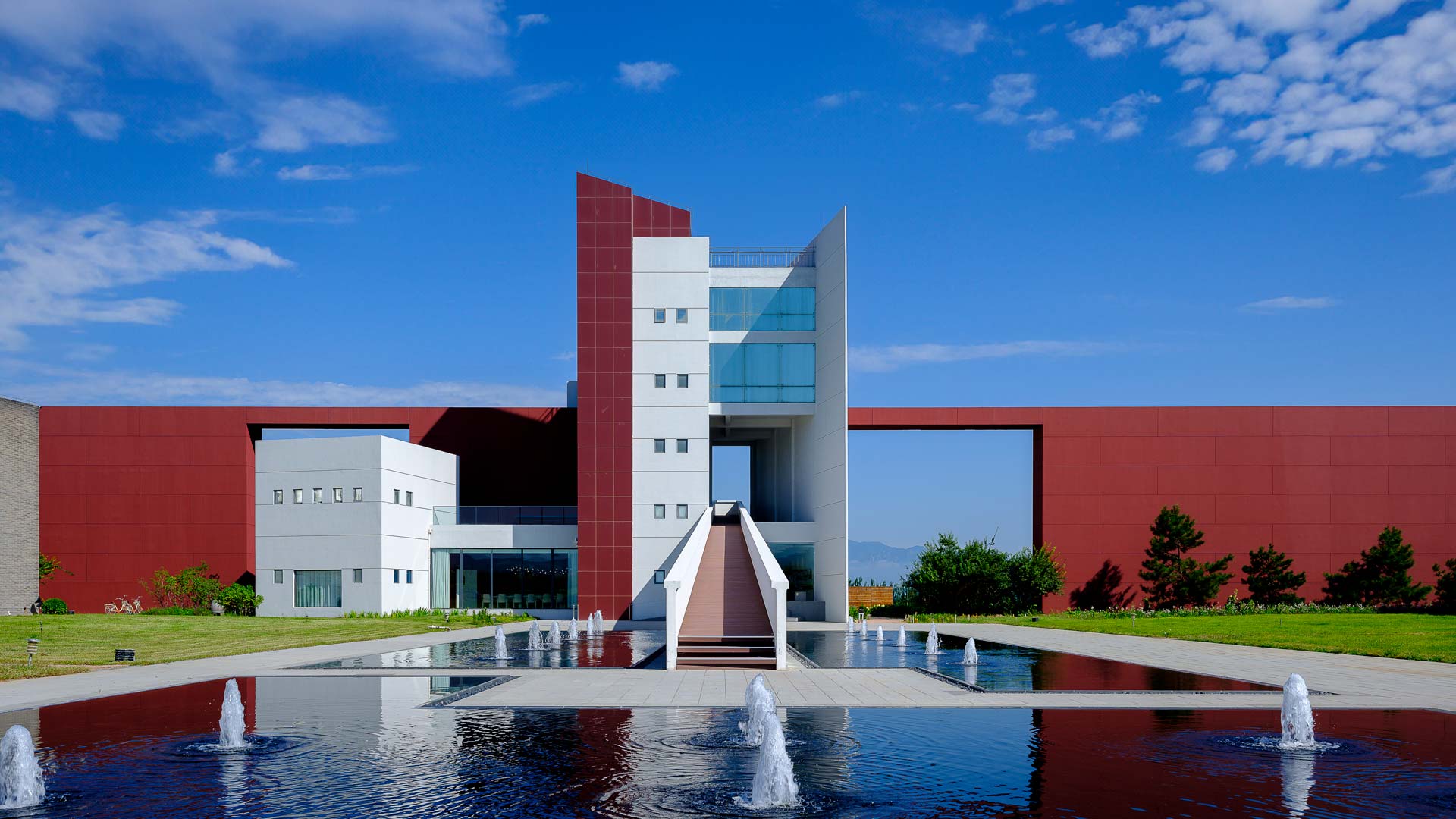 The architectural design of the Domaine Franco-Chinois complex incorporates the stately gray of the Great Wall and the red hues of the Forbidden City. The modern design concept achieves a seamless fusion of classical and contemporary elements as well as Eastern and Western cultures.